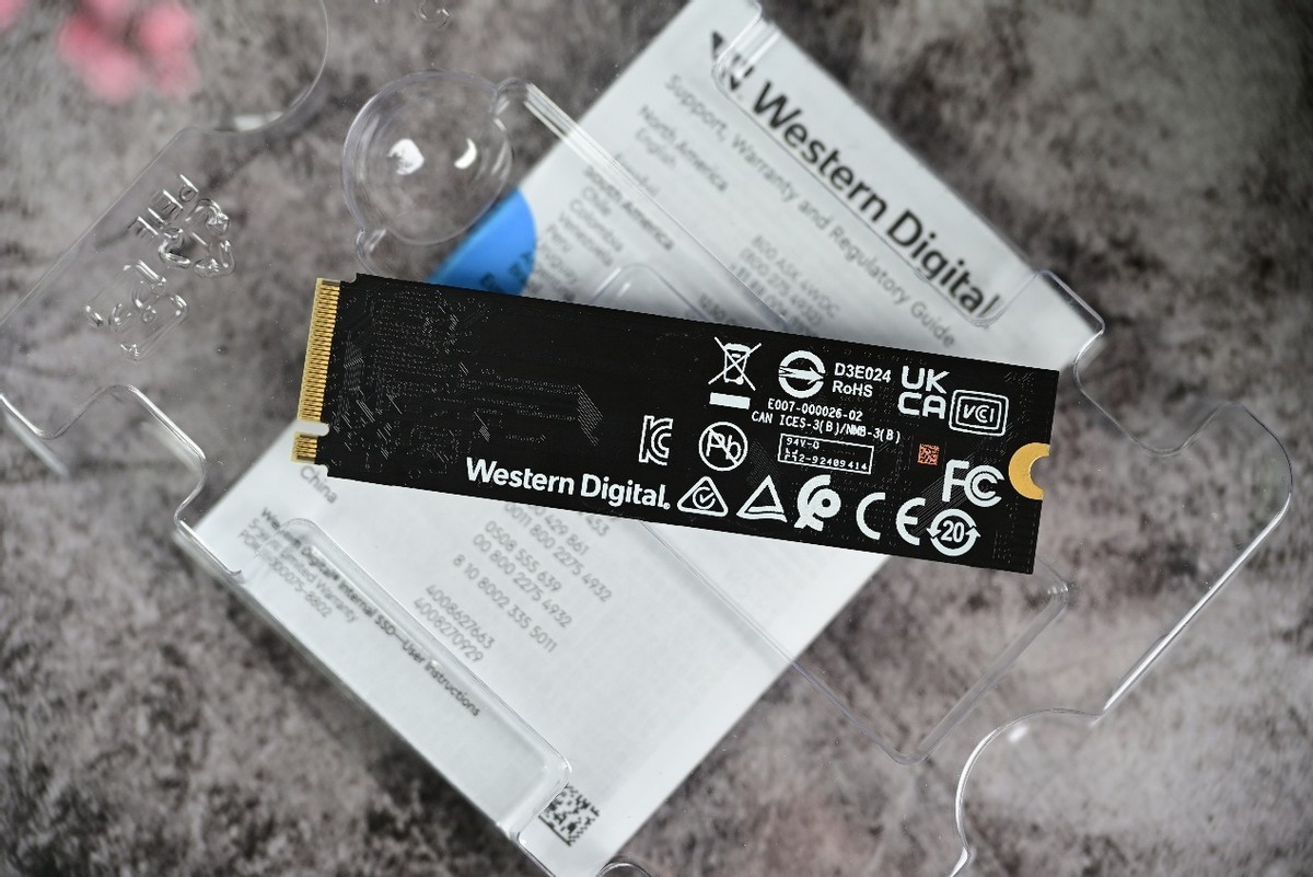 打开包装后,我们便可以看到本次测评的主角WD Blue SN5000 NVMe SSD 2TB规格的本体了。固态硬盘外形采用了M.2 2280-S3-M规格设计,小巧而精致。单闪存颗粒设计、DRAM-less架构与低功耗设计则使得这款固态硬盘在保持高性能的同时,还拥有更加节能的表现。